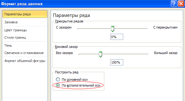 Для цього вибираємо на графіку сині стовпці, тиснемо на праву кнопку миші та вибираємо "Формат рядів даних". Далі вибираємо допоміжну вісь:
