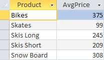 Run SQLSELECT DISTINCT Product, Amount/Quantity AS AvgPrice
