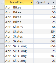 Run SQLSELECT Month + ' ' + Product AS NewField, Quantity