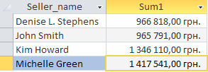 Run SQLSELECT Seller_name, SUM(Amount) AS Sum1