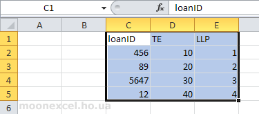Бачимо, що адреса діапазону $C$1:$E$5, к-ть колонок - 3, к-ть рядків - 5.