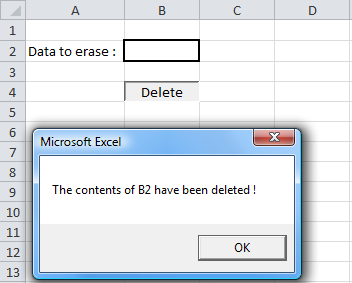 MsgBox "The contents of B2 have been deleted !"  ' "Вміст комірки B2 видалений !"