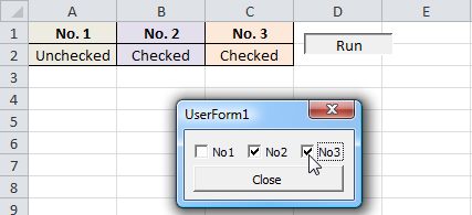 Коли чекбокс (прапорець) відмічений/невідмічений, значення повязаної комірки може бути змінено через використання події Click: