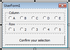 В попередньому коді ми використали два For Each цикла, щоби дістати значення опційних кнопок (Option Buttons). Зараз нам потрібно використати ті самі значення для кнопки "Підтвердження" ("Confirm") та подію Click для десяти опцій.