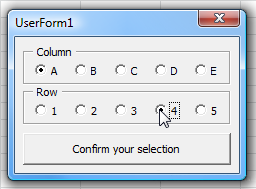 Range(column_value & row_value) = "Cell chosen!" ' "Комірка вибрана!"