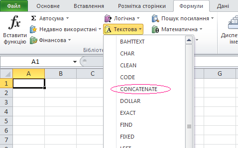 Дана функція знаходиться у вкладці Формули в розділі Текстова: