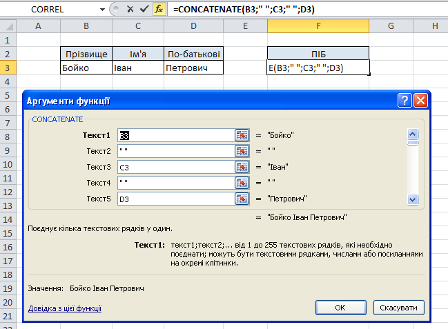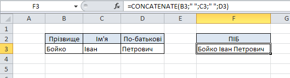 Що потрібно зробити, щоб з'єднати в Excel текст з різних комірок? Для виконання цієї роботи в Excel є спеціальна функція, яка називається CONCATENATE.