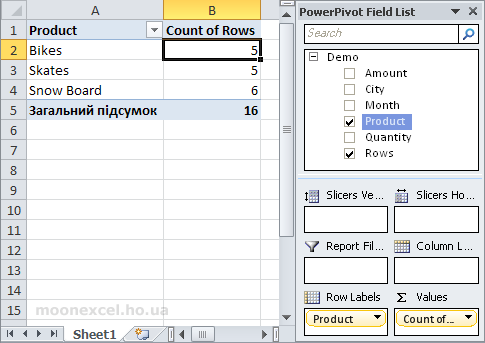Давайте на її основі створимо зведену таблицю та підрахуємо кількість записів для кожного продукту.